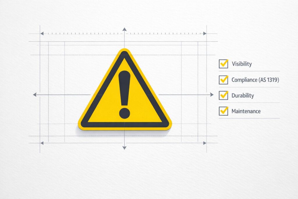 - Compliance is non-negotiable: Follow AS 1319-1994 for colours, shapes, and sizes.