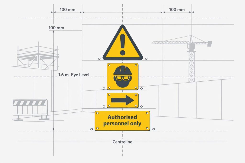 The colour schemes are carefully chosen for quick recognition – red for prohibitions, green for guidance, and so on. Studies show that when these systems are properly implemented, incidents like near-misses in danger zones can decrease by around 30% [10]. Alongside colours and symbols, ensuring the correct size and placement of signs is vital for their effectiveness.
