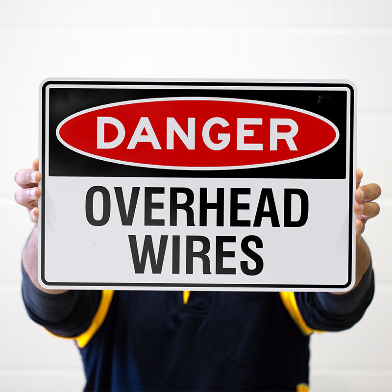 Keep your employees safe with this DANGER – Overhead Wires metal sign. Made from durable 1.6mm aluminium, this sign is firm and long lasting. The digital print on high quality vinyl ensures clear and vibrant graphics, while the UV laminate film protects the print from fading and damage. The metal sign features rounded corners for added safety in the workplace.