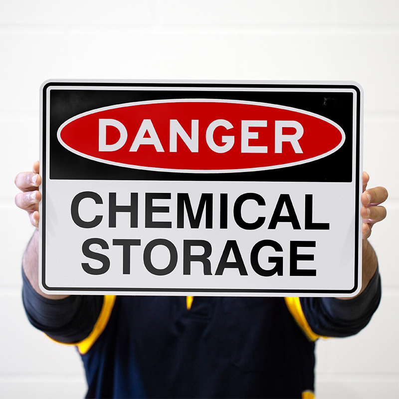 Introducing our durable and eye catching DANGER – Chemical Storage metal sign. Made from sturdy 1.6mm aluminium, this sign is built to last. The digital print on high quality vinyl ensures clear and vivid colors, while the UV laminate film protects the print from fading and damage caused by the elements.