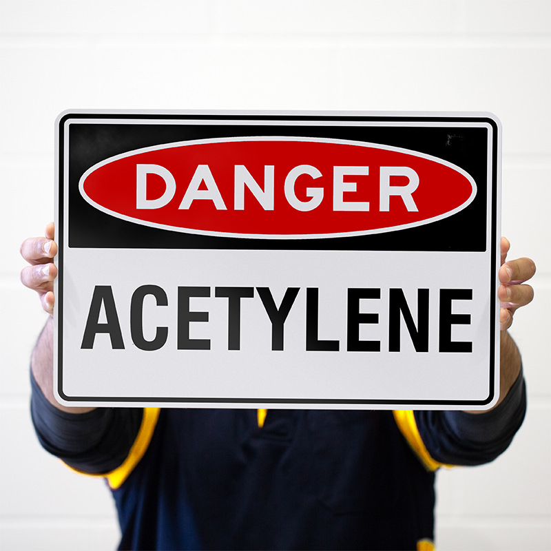 Signage is essential for maintaining a safe work environment, and our DANGER – Acetylene metal sign is the perfect addition to your workplace. Made from durable 1.6mm aluminium, this sign is firm and long lasting. The digital print on high quality vinyl ensures clear and crisp text that won’t fade over time. To further protect the design the sign is laminated with a UV laminate film, making it resistant to outdoor elements.