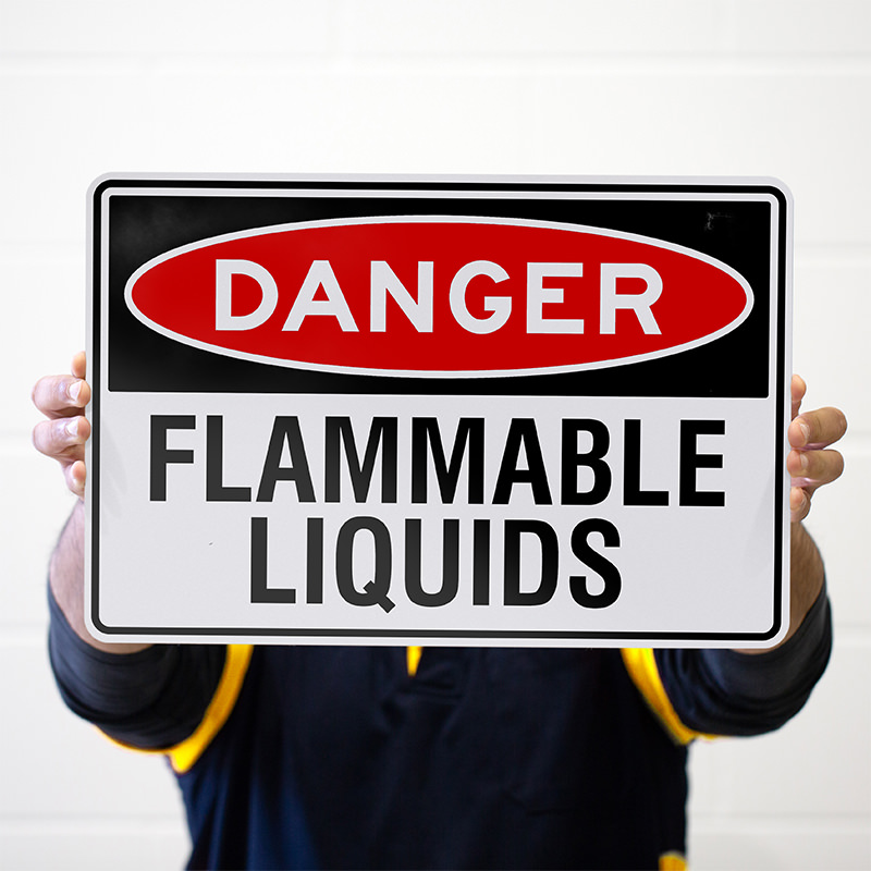 Keep your workplace safe and compliant with our DANGER – Flammable Liquid metal sign. Made from durable 1.6mm aluminium, this sign is firm and built to last. The digital print on high quality vinyl ensures that the message is clear and easy to read. To protect the print from fading the sign is laminated with a UV laminate film. With rounded corners for safety, this sign is a must have for any industrial setting.