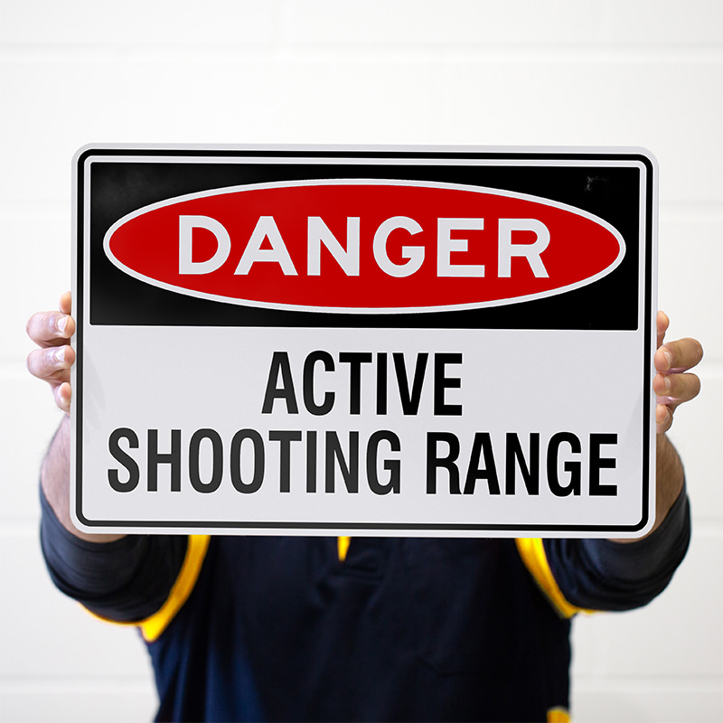 Add a layer of Safety to your property with our DANGER – Active Shooting Range metal sign. Made from durable 1.6mm aluminium, this sign is designed to withstand any weather conditions. The high quality vinyl digital print is laminated with a UV film to protect the print from fading, ensuring long lasting visibility.