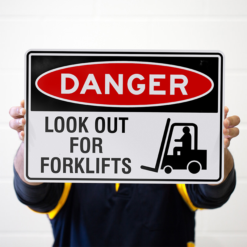 Keep your work environment safe with this durable and high quality DANGER – Look Out For Forklifts metal sign. Made from 1.6mm aluminium, this sign is sturdy and built to last. The digital print on high quality vinyl ensures that the text is clear and easy to read. To protect the print and ensure longevity, the sign is laminated with a UV laminate film. The rounded corners add a touch of safety to the design, making it safe to handle and install in any workplace.