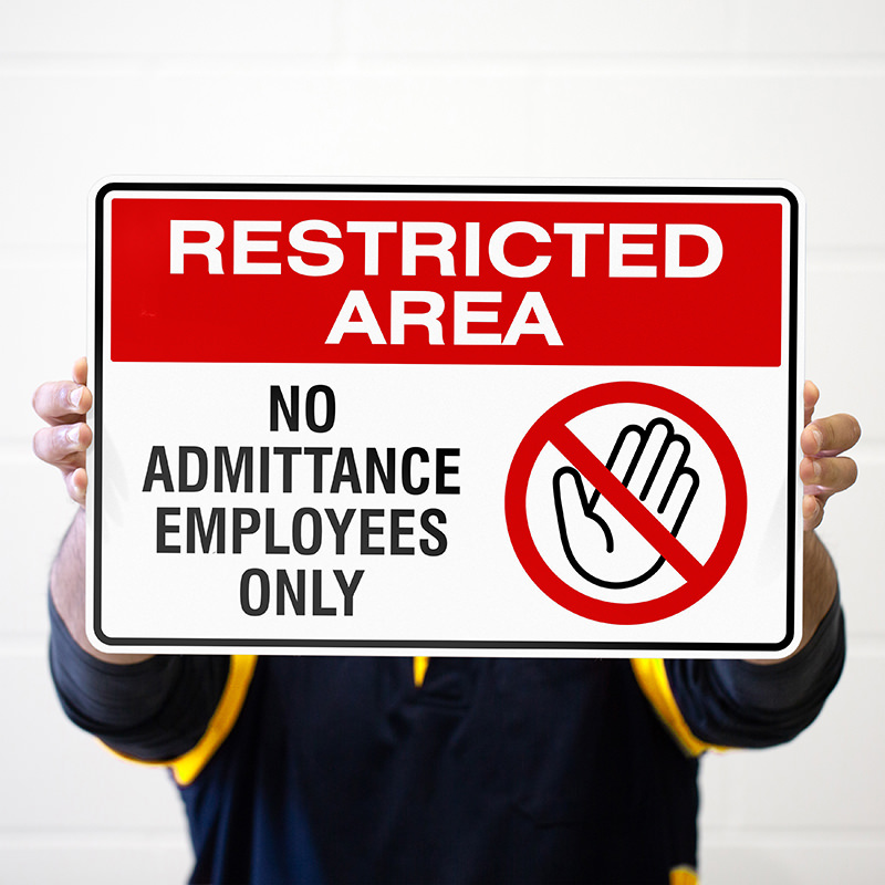 Clearly define restricted areas with the No Admittance Employees Only sign. Made from durable aluminium, this sign ensures that only authorized personnel can enter designated employee only zones, helping maintain security and organization within the premises.