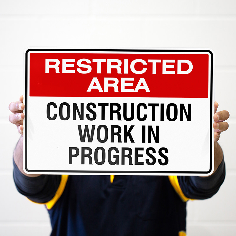 Alert visitors and workers with the Construction Work In Progress sign. Made from durable aluminium, this sign provides clear communication that construction activities are taking place on-site, ensuring safety and awareness for everyone nearby.