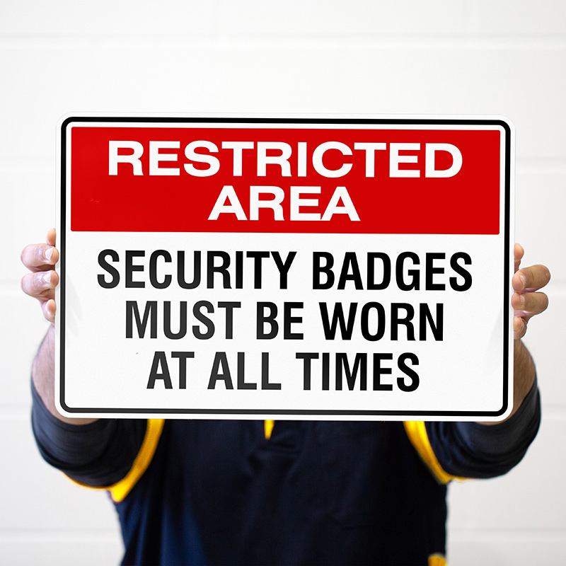 Promote safety and compliance with the Security Badges Must Be Worn At All Times sign. Constructed from durable aluminium, this sign ensures that security protocols are clearly communicated, helping to maintain a secure and regulated environment.