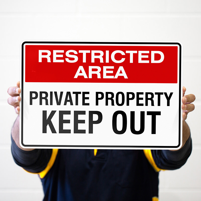 Secure your property with the bold Private Property Keep Out sign. Made from durable aluminium, this sign sends a clear and strong message to keep unauthorized individuals off your premises, ensuring your boundaries are respected.
