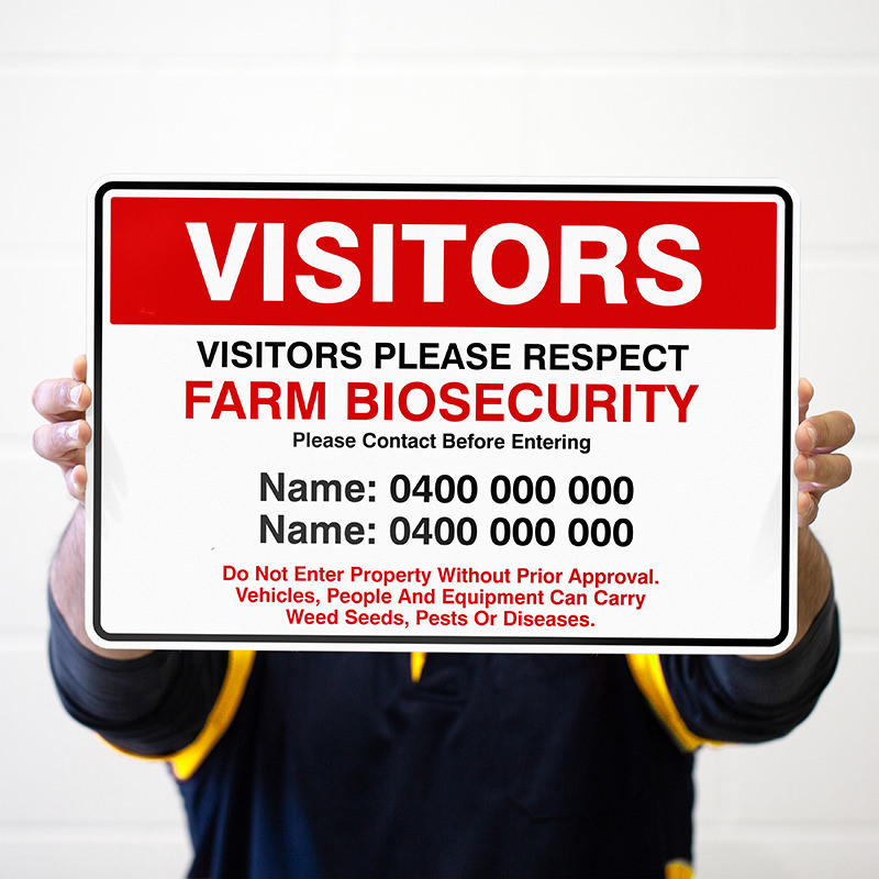 Safeguard your farm with our customizable Farm Biosecurity Option 1 sign, designed to provide clear and immediate security awareness. Crafted from heavy duty aluminium, this sign boasts a sleek, modern design that withstands outdoor conditions, ensuring your biosecurity message stays visible year round.