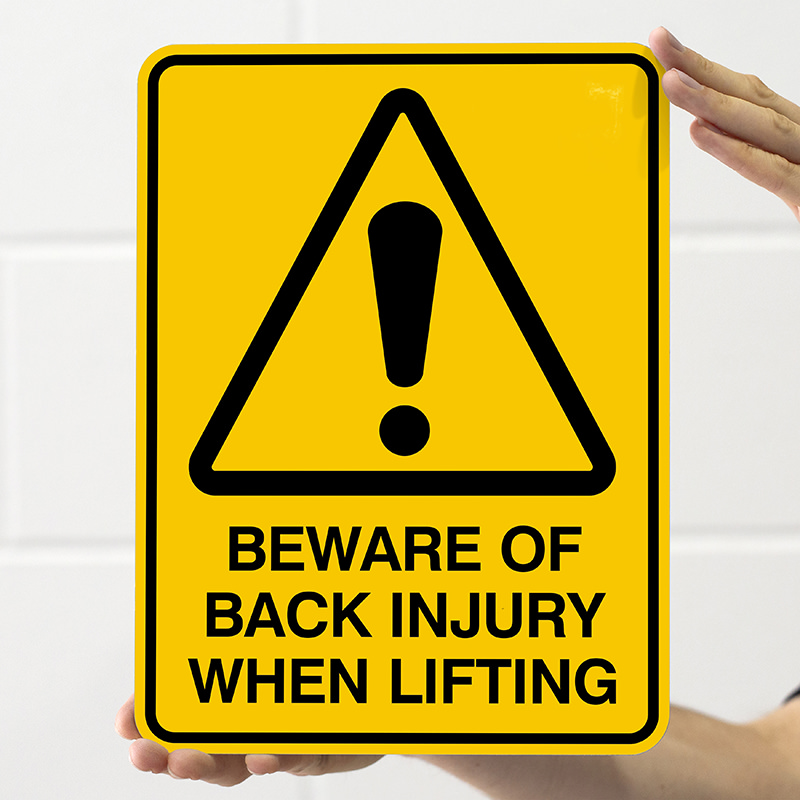 Prevent back injuries with our Beware Of Back Injury When Lifting sign. This durable aluminium sign features bold, high quality printing and a UV laminate coating to withstand outdoor conditions.