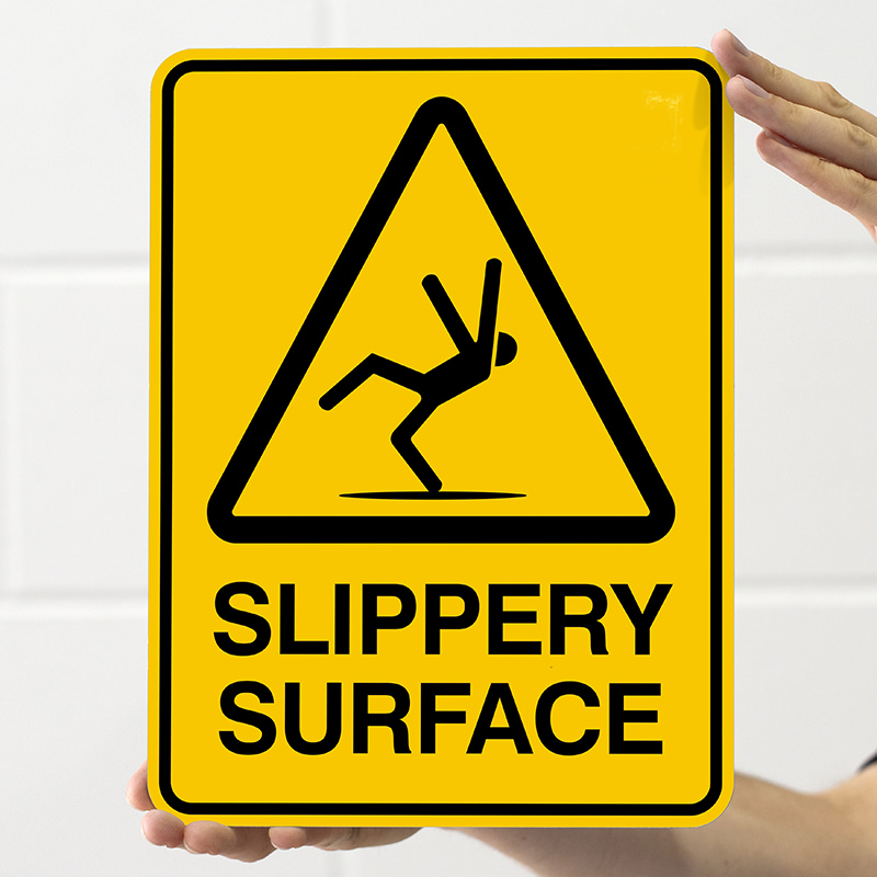 Warn pedestrians of potential slipping hazards with our Slippery Surface sign. Made from robust aluminium, this sign features a UV resistant vinyl print to ensure it withstands tough conditions.