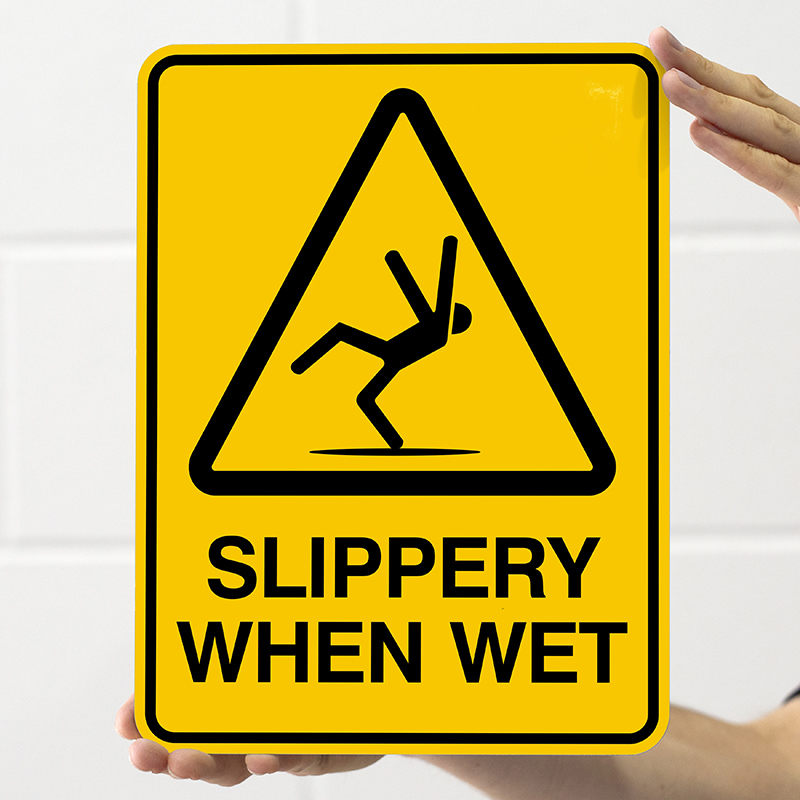Ensure safety around wet surfaces with our Slippery When Wet sign. Constructed from tough aluminium, this sign features a high quality vinyl print with UV protection to resist harsh outdoor elements.