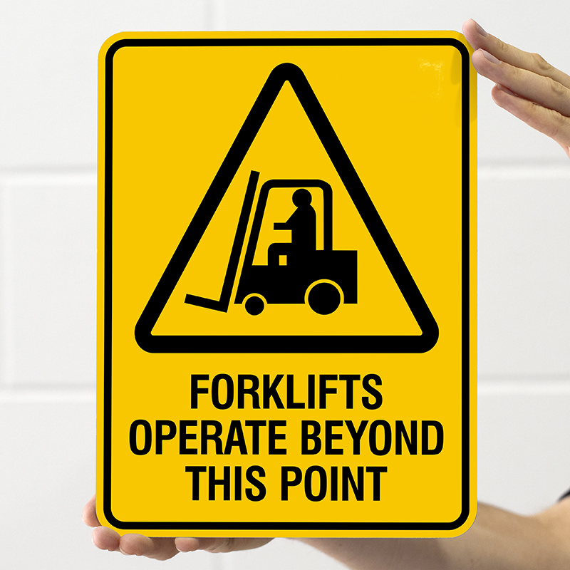 Mark restricted areas with our Forklifts Operate Beyond This Point sign. Made from tough aluminium, this sign features UV protected vinyl printing to ensure it withstands outdoor conditions.
