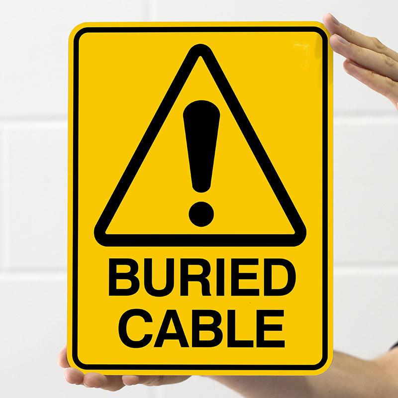 Prevent accidental damage with buried cables by marking them with our Buried Cable sign. Featuring a durable aluminium construction and high visibility vinyl print, this sign is designed to withstand the elements and provide clear warnings.