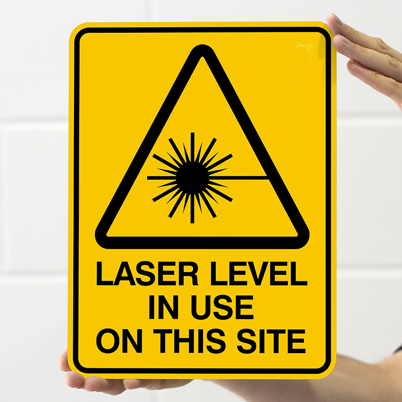 Keep workers informed with our Laser Level In Use On This Site sign. Crafted from durable aluminium with UV protected vinyl, this sign ensures clear communication of laser hazards on the job site.