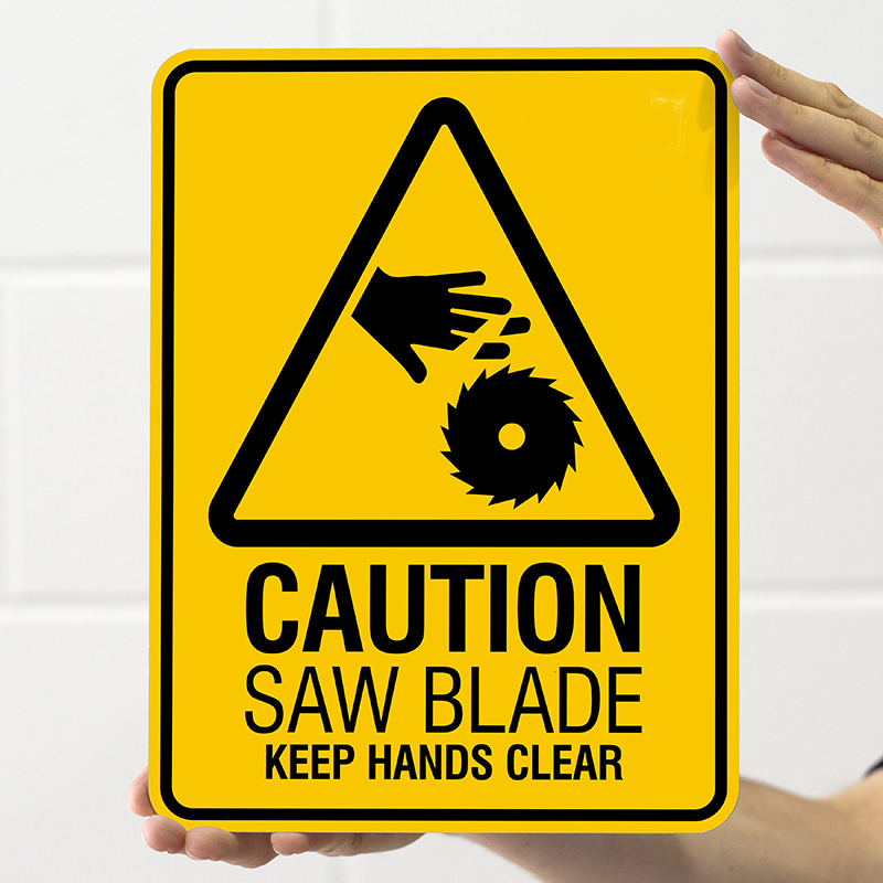 Keep workers safe around dangerous saw blades with our Caution Saw Blade Keep Hands Clear sign. Made from durable aluminium, it features high quality digital printing and UV laminate for protection against the elements.
