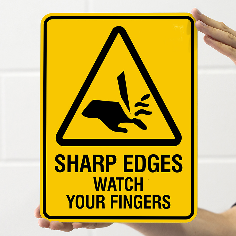 Alert workers to the risk of sharp edges with our Sharp Edges Watch Fingers sign. Constructed with high quality aluminium and UV laminate protection, this sign ensures safety in the workplace.