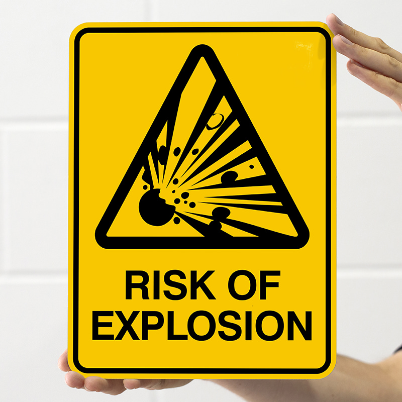 Warn everyone of potential explosive hazards with our Risk Of Explosive sign. Made from durable aluminium, this sign features a high quality vinyl print, shielded with a UV laminate for lasting protection in any environment. The bold design ensures visibility and clear communication of the risk.