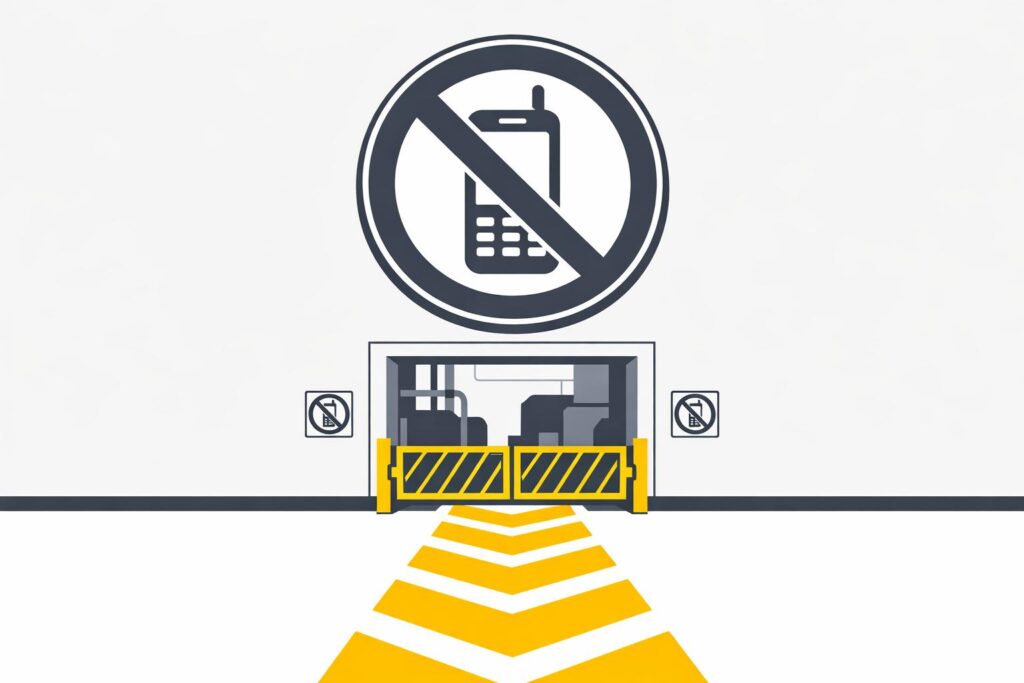 Hospitals and laboratories also enforce restrictions, as mobile phones can interfere with sensitive medical and electrical equipment [8][4]. Industrial and logistics facilities, such as manufacturing plants and bulk materials handling zones, are high-risk due to the complexity of operations and the presence of heavy machinery [8]. Refuelling stations impose strict bans during plant and vehicle refuelling to reduce fire hazards [6].